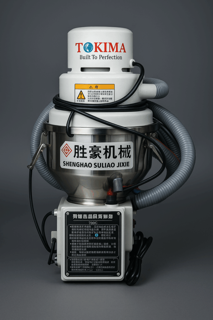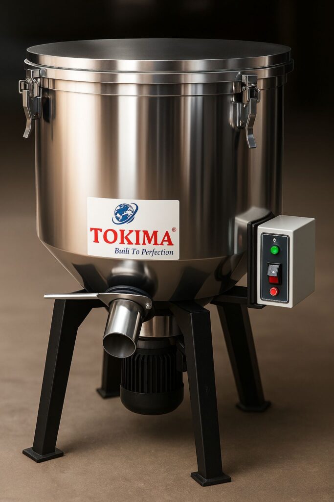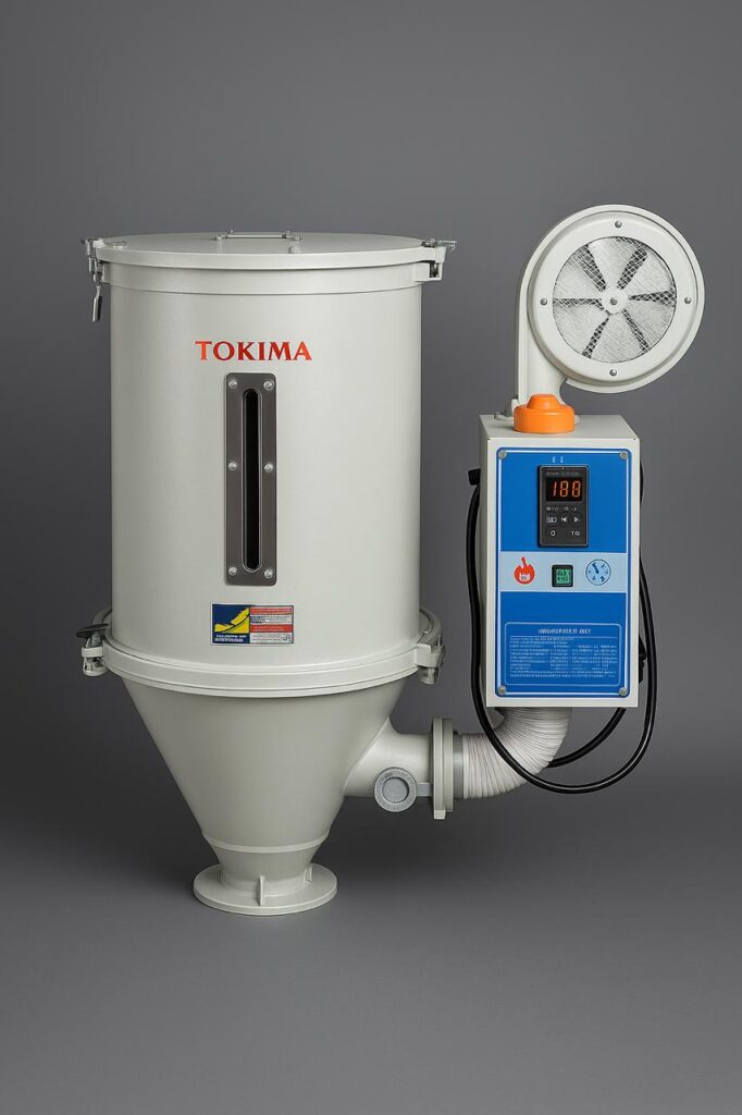 Our TOKIMA Hopper Dryer ensures optimal material pre-processing by eliminating moisture from plastic resins before moulding. Available in 25 kg to 200 kg capacity, it features precise temperature control, fast drying cycles, and energy efficiency—making it ideal for a wide range of polymers like ABS, PC, Nylon, and more.
